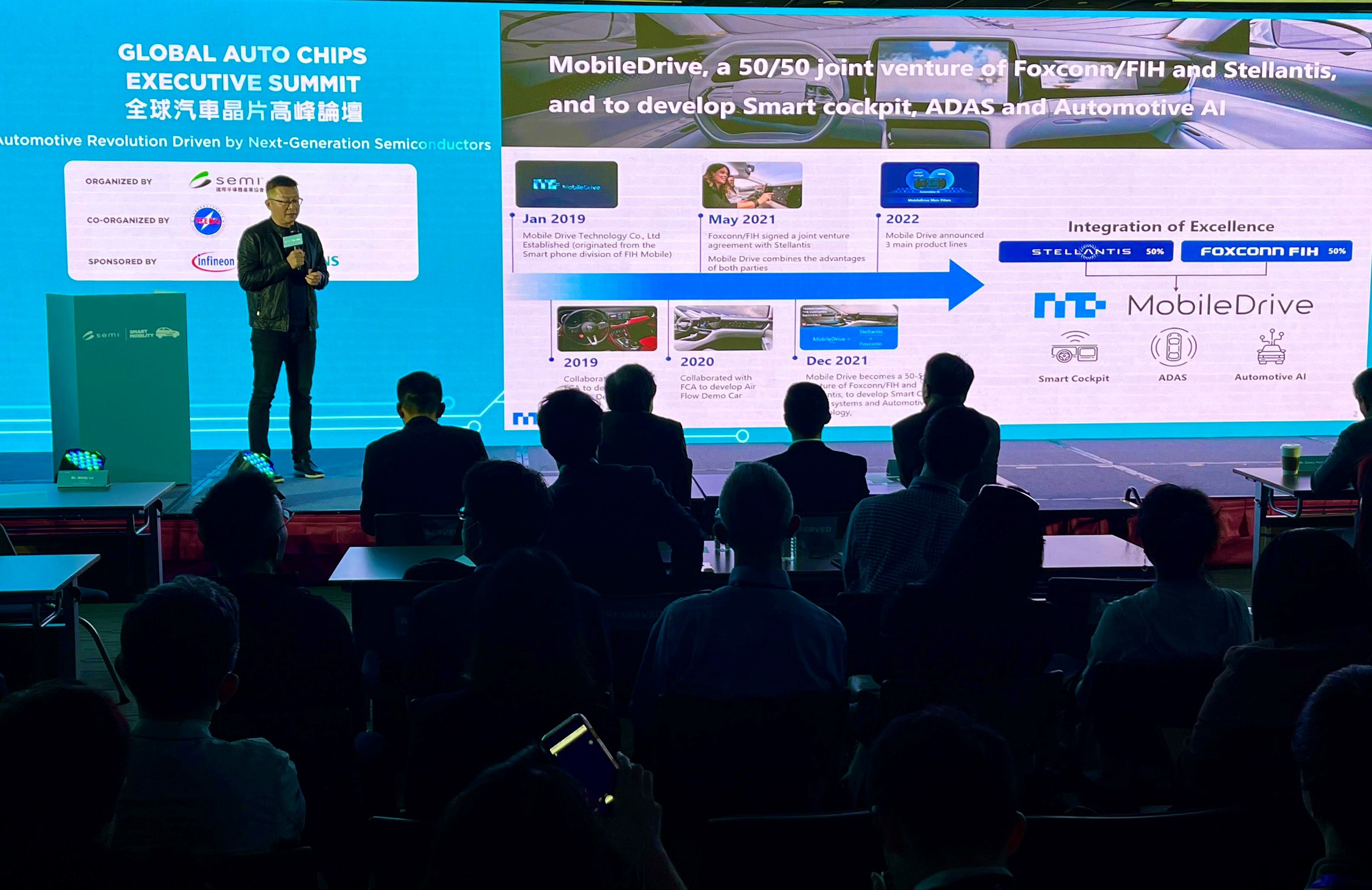 作為台灣唯一一間有能力結合AI技術提供整車車載軟硬體與系統整合解決方案之企業,鴻海集團旗下富智康子公司富智捷(MobileDrive)今年特別受邀參與2023台灣國際半導體展(Semicon Taiwan 2023)首屆舉辦的「全球汽車晶片高峰論壇」,與國際半導體與車用電子大廠同台分享產業趨勢。