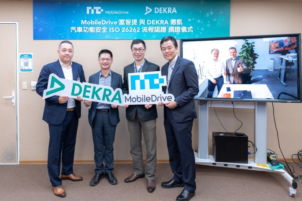 頒證儀式上由MobileDrive富智捷董事長黃聖傑代表接受DEKRA德凱台灣營運總經理李春和先生所頒贈的ISO 26262證書,同時出席的還有負責此次認證專案的DEKRA 德凱台灣區全球功能安全經理黃浩鈿;當天也特別遠距連線DEKRA德凱亞太區高級副總裁Kilian Aviles博士和DEKRA德凱功能安全全球高級副總裁Gerhard Rieger先生,一起線上共同參與了此次頒證儀式。